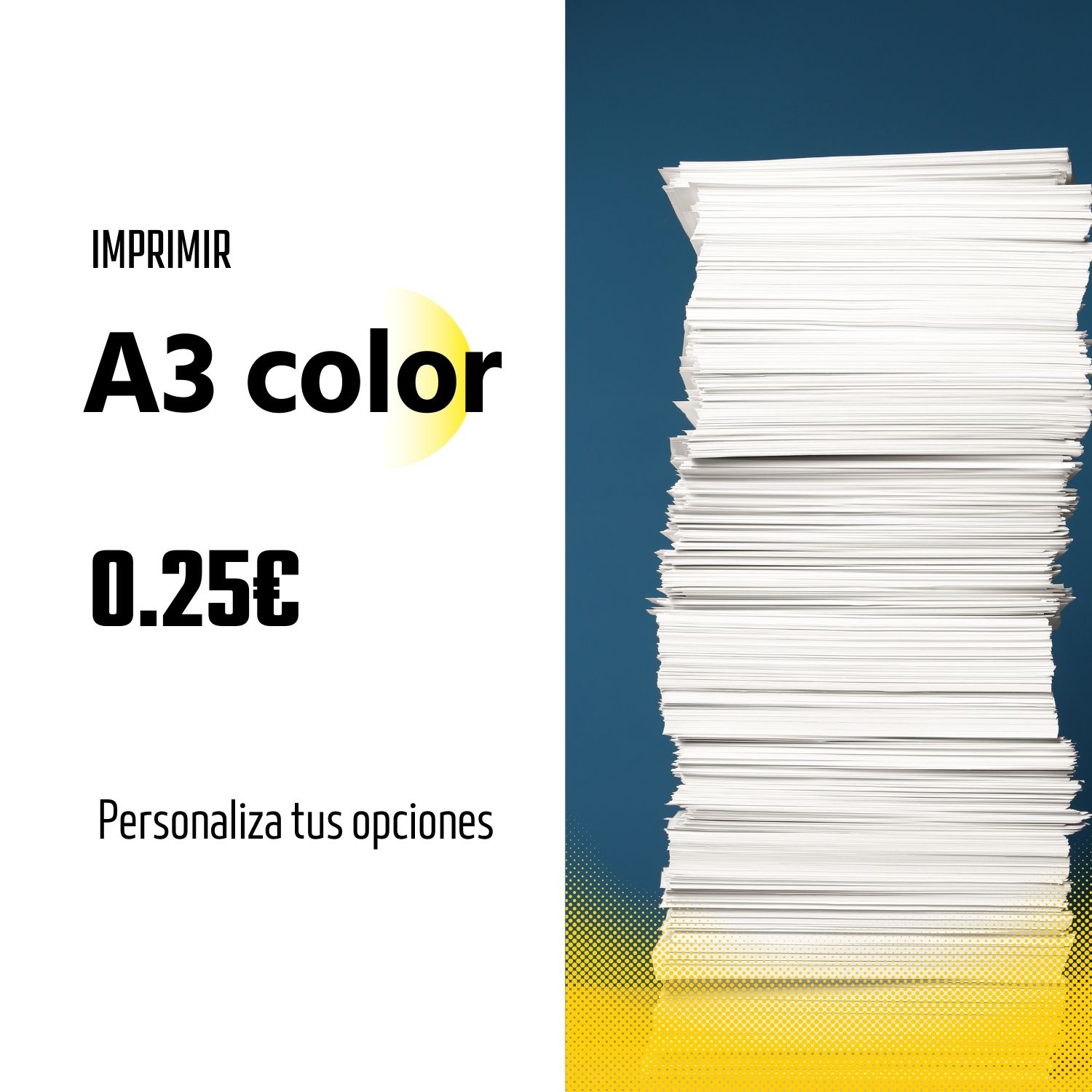 Experimenta la simplicidad y la asequibilidad de imprimir tus documentos A3 en color con ImprimirTe. Con precios a partir de 0.25€ por página, nuestro servicio te permite personalizar cada detalle de tus impresiones para satisfacer tus requisitos específicos.